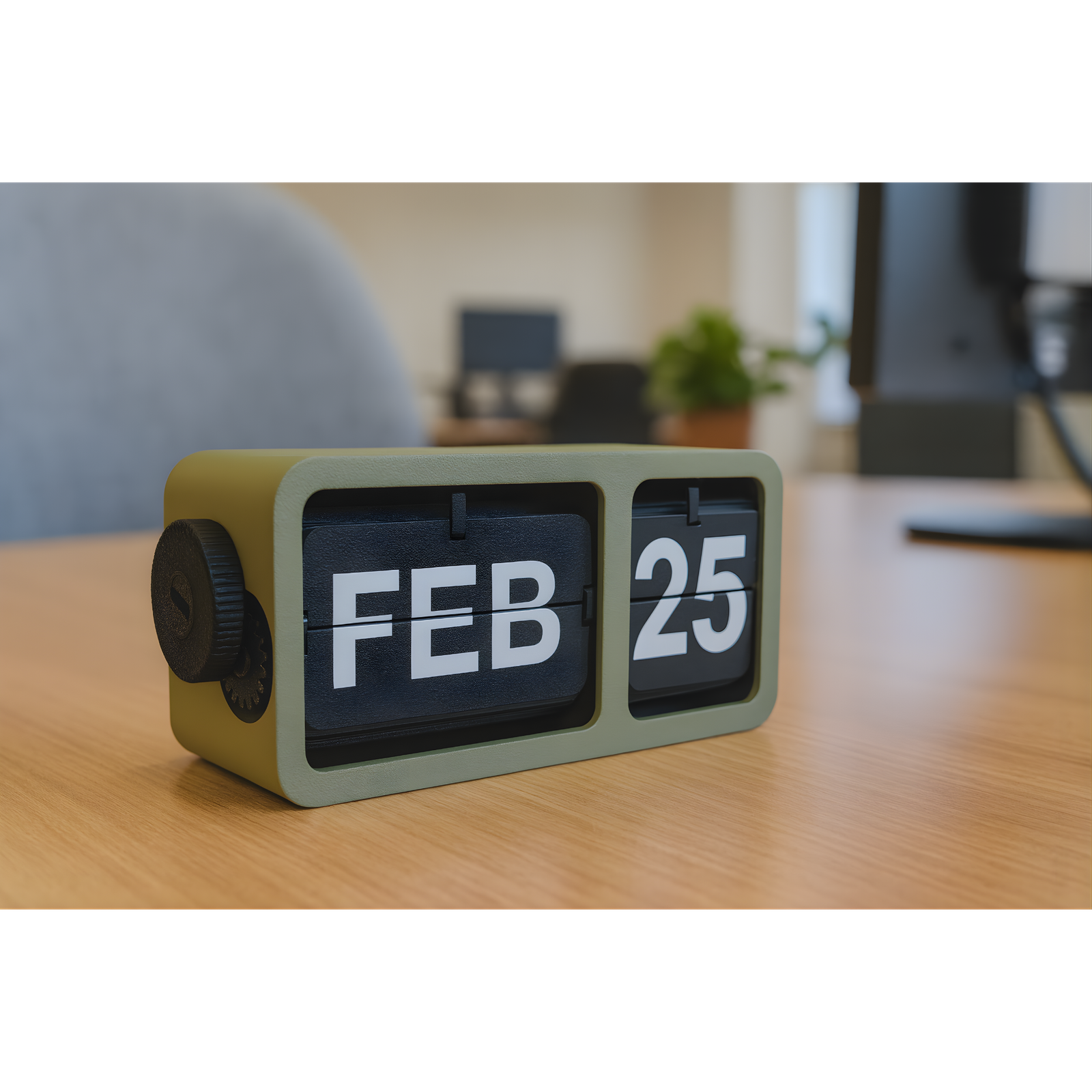 Made with durable, eco-friendly materials, the Flip Calendar ensures lasting performance and easy maintenance. The two independent adjustment knobs allow you to set the date and month effortlessly—no batteries or software required. Perfect for your home office, study, or reception desk, it provides an elegant reminder of the date in a form that feels tactile and personal.